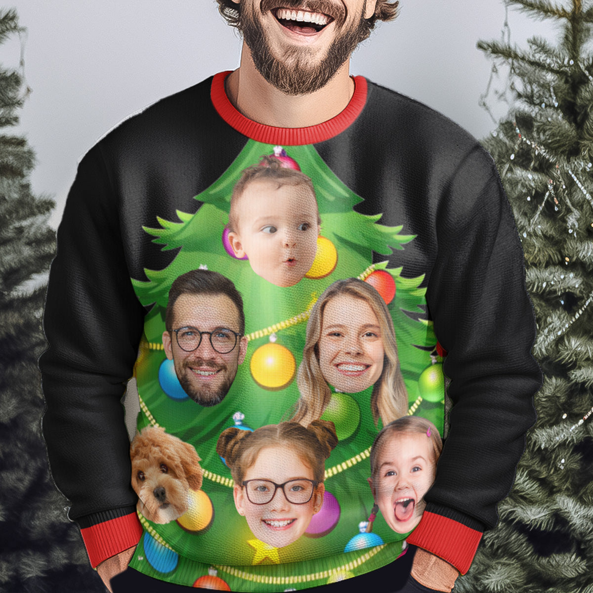 Get festive with our Personalized Photo Ugly Sweater that turns you into a living, breathing Christmas tree! This fun and quirky sweater features your face or a family member’s photo all over a Christmas tree design, complete with ornaments and holiday cheer. Whether it’s for dads, moms, grandparents, siblings, or sisters, these matching ugly sweaters are a hilarious way to celebrate the season in style.