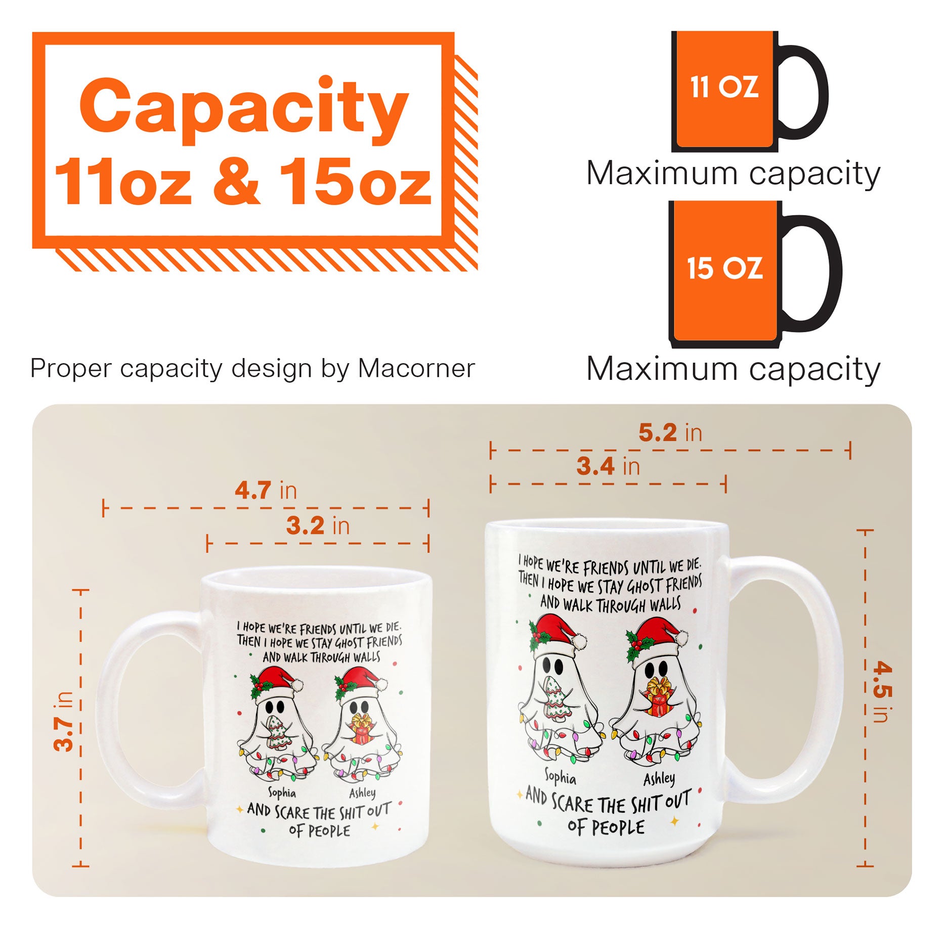 Celebrate the spooky and fun side of your friendship this Christmas with a unique and quirky mug designed for your best friend. Featuring an adorable holiday ghost theme and a hilarious quote about lifelong friendship, this mug is perfect for your partner-in-crime who’s always by your side. Whether you’re sharing laughs over coffee or enjoying cozy hot chocolate on a chilly winter night, this mug adds a touch of humor and warmth to your moments together. A thoughtful gift for friends who are more like family, this mug is sure to bring smiles and cherished memories every time it’s used!