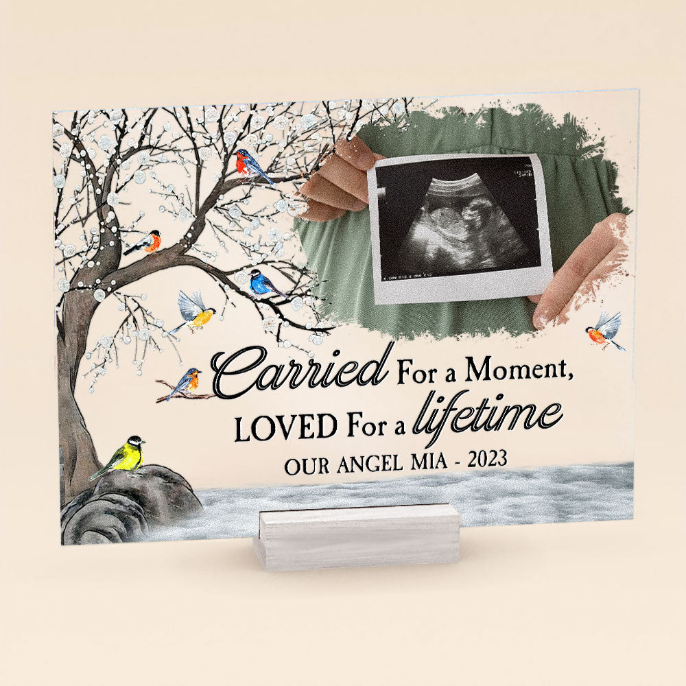 This beautiful “Carried for a moment, loved for a lifetime” Acrylic photo plaque is a lovely way to commemorate the passing of a loved one.