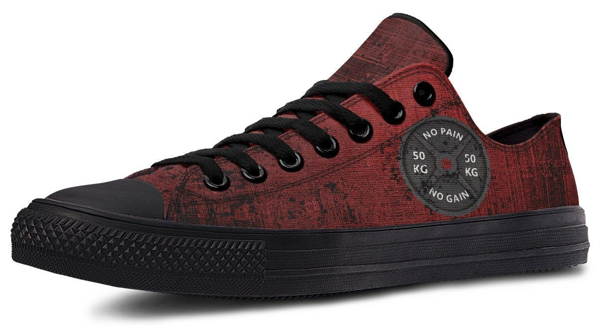 Turn heads while you train with the ‘No Pain No Gain’ Red Pattern Black Low-Top Sneakers. These striking red and black sneakers are built for those who live a bold, active lifestyle. The high-contrast pattern exudes energy, while the ergonomic low-top design ensures maximum ankle mobility and support. Whether you are lifting weights or running errands, these durable sneakers provide the traction and style needed to crush your goals with confidence.